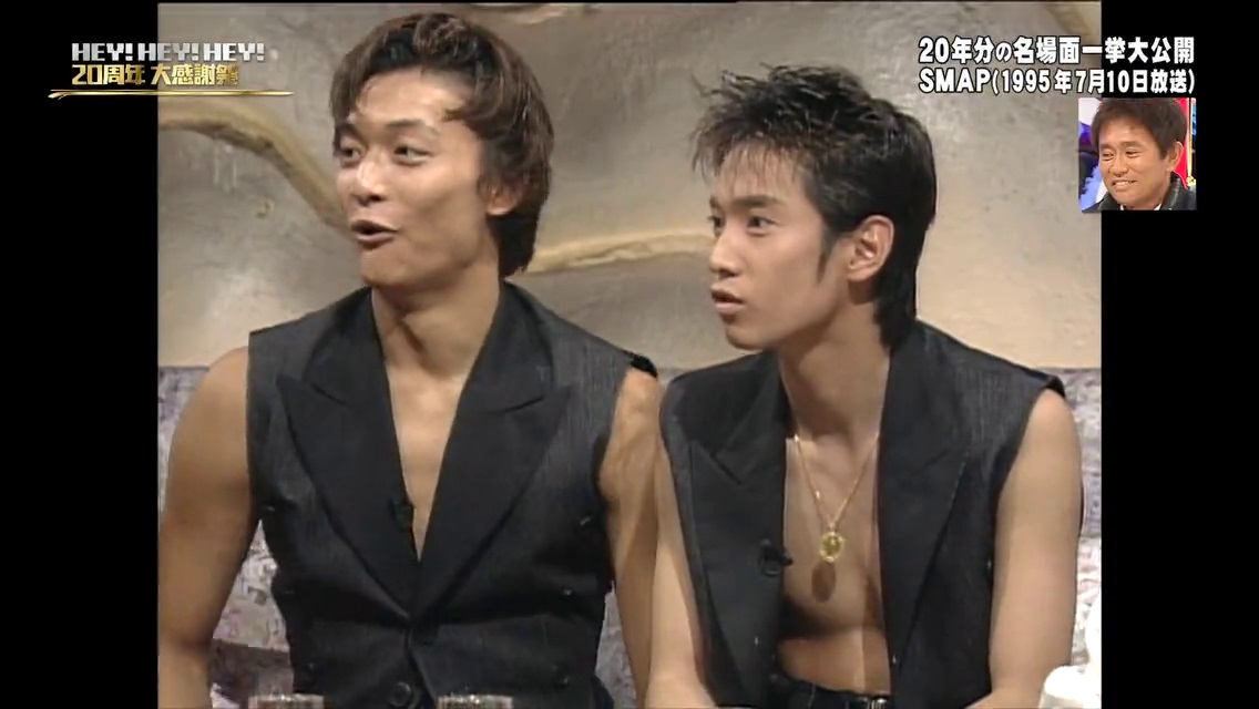 Mega smash-hit song by SMAP that I’ve never seen the fuss about. Another song I normally skip. SMAP leader Nakai is wearing his usual hat to cover up his balding pate. I wonder if he’s gotten a hair transplant since. It worked for Rooney!